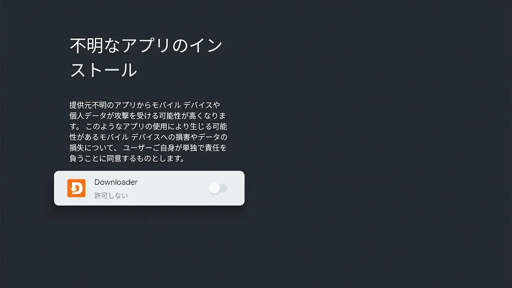 設定画面で「Downloader」へカーソルを移動して選択し、スイッチをオンに切り替えたら、表示されるメッセージに従って「インストール」を選択してください。